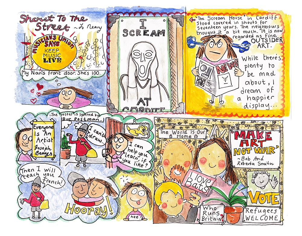 Art speaks loudly. Painting a picture, making a movie, creating a song, a comic or a performance is a very direct way to the heart, and thence the minds, of society.